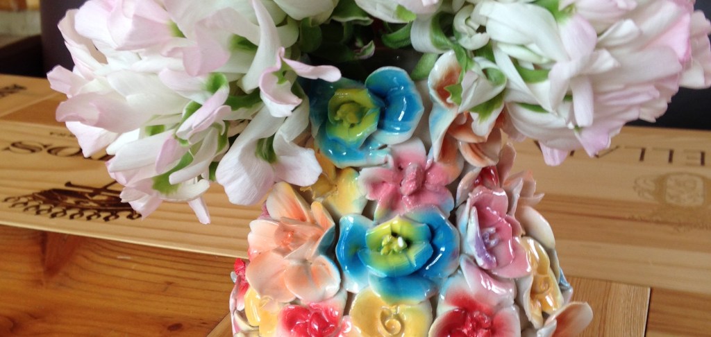 Eine Vase wie auf dem Bild – ein filigranes Kunstwerk aus Porzellanblumen – rutschte dem Kellner beim Umräumen aus den Händen. Splitterndes Porzellan, erstarrte Gesichter. Das kaputte Unikat rief Ärger, Wut und schließlich Tränen bei der Besitzerin hervor.